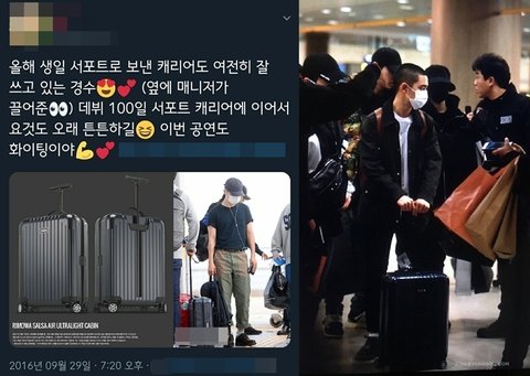 팬들이 생일 선물로 준 캐리어도 같이 사용함
