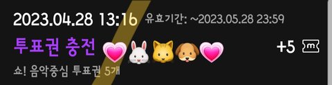 휴 이거뭐 뮤빗 투표권 만드는것보다 인증짤 만드는게 더 귀찮네ㅋㅋ 난 글을 잘 안쓰는편이라 이런거 인증 참여도 잘 안하는편인데 어젯밤 계정 6개 올린 분이 감동이라서 안올릴 수가 없더라