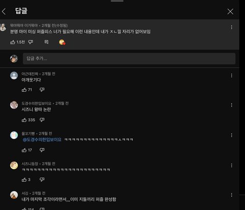 퍼즐피스 유툽 댓글ㅋㅋㅋㅋㅋㅋ