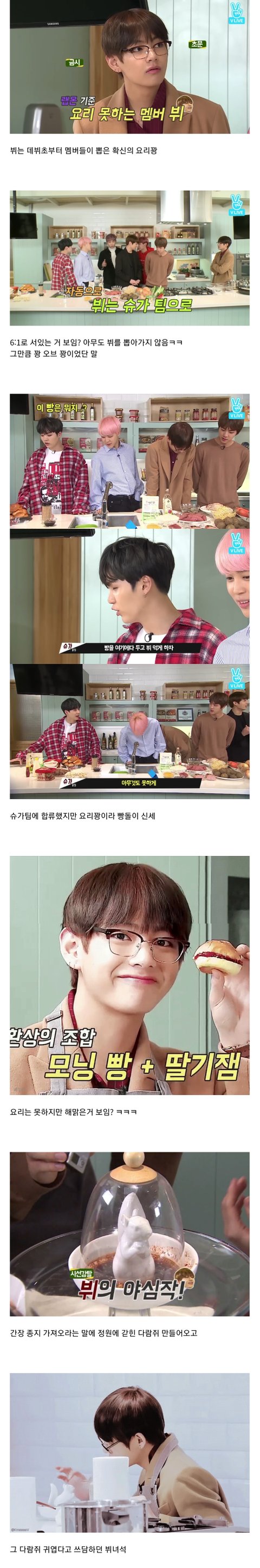 요리꽝에서 요리왕 뷔룡이 되기까지..확신의 성장캐 방탄 뷔