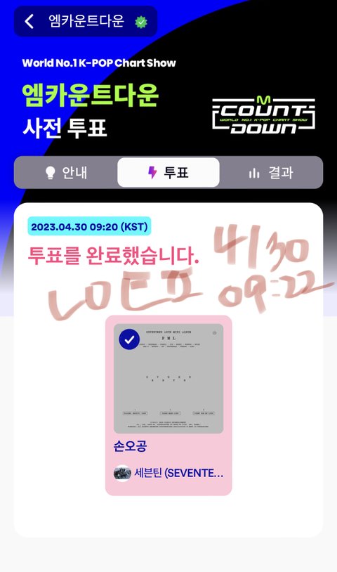 어느 순간.. 엠카 회원가입하고 투표까지 했네..