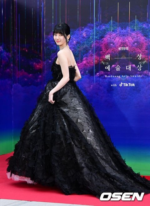 ‘백상예술대상’의 MC 수지도 역대급이라 할 정도의 비주얼로 화제가 됐다. 수지는 한 마리의 흑조를 연상시키는 드레스를 입고 등장했다.