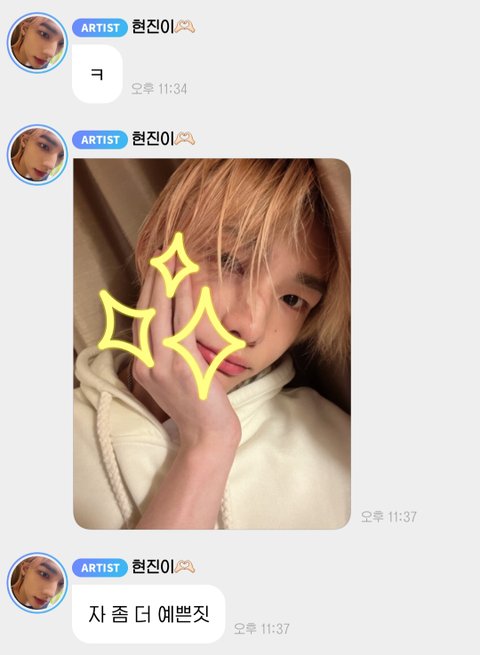 황현진 저러고 개인버블로 좀 더 예쁜짓이라고 다른 셀카보내줌......이러니 내가 미쳐 안미쳐ㅠㅠ 말랑족젭만두 얼굴도 이쁘고 팬사랑도 기가막힘