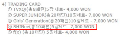 5장이면 4,000원이고, 10장이면 7,000원인데 샤이니만 5장에 7,000원?