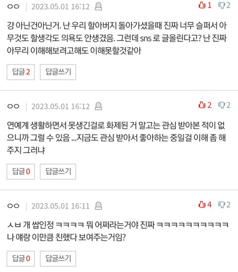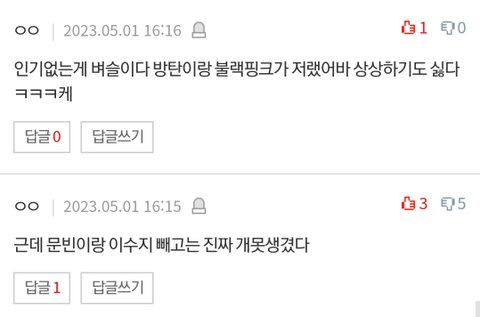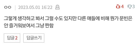 글은 김민주 글인데 베플은 장원영 머리채인거 개웃기네 ㅋㅋㅋㅋㅋ 장원영은 남의글에서까지 머리채 잡히는 슈스구나... 진짜 장원영에 대..