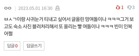 판은 진짜 장원영 못 잃는거 봐ㅋㅋ 장원영이 탑이고 잘 나가긴 하나 보네 상관도 없는 글에도 언급하고 악플 달리네 쓰니야 장원영 안티 ..