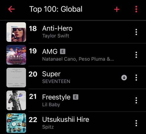멜.론은 일간 6위 찍었고 이용자수도 20만넘었어!! 그리고 글로벌 스포티파이도 순위 커하고 앺뮤 글로벌 20위임 참고로 지금까지 앺뮤 글로벌 20위권에 들어간 남돌 ㅂㅌ분들이랑 우리임 대박이야