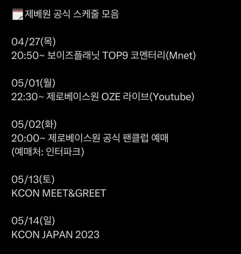 제베원 공식스케줄에