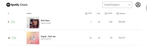 피프티피프티 케이팝그룹 최초 영국스포티파이 top10 진입