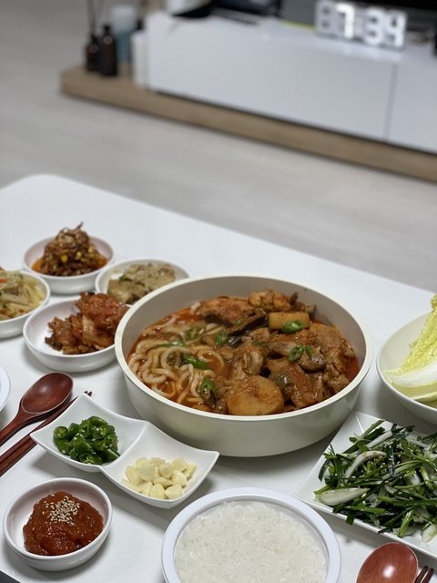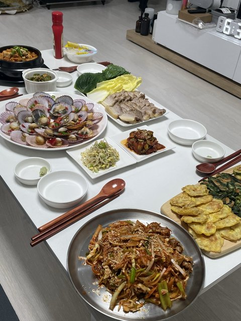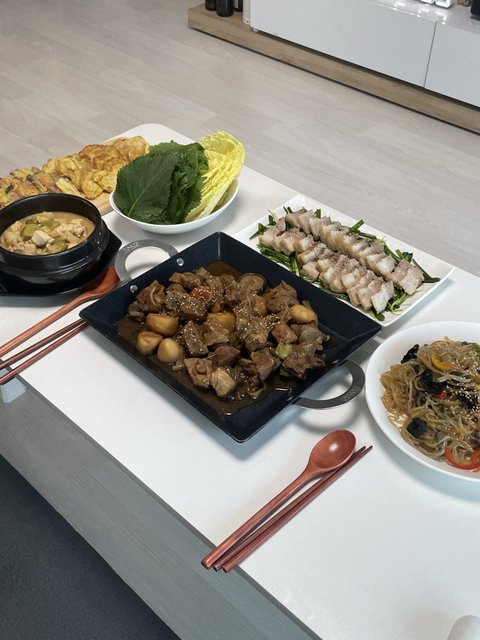 갈비찜,잡채,전,수육,청국장 한식파티
