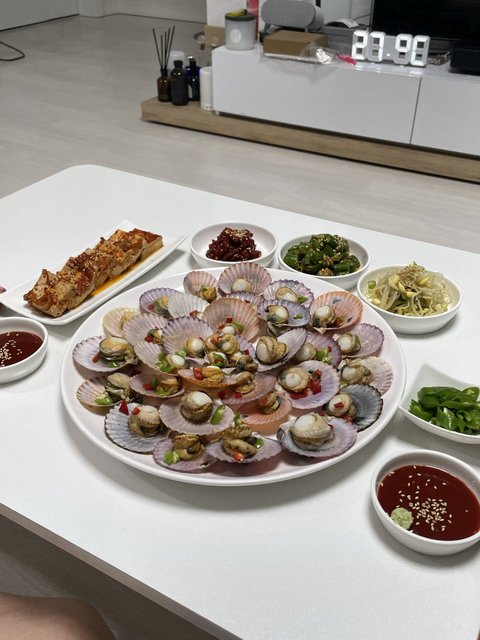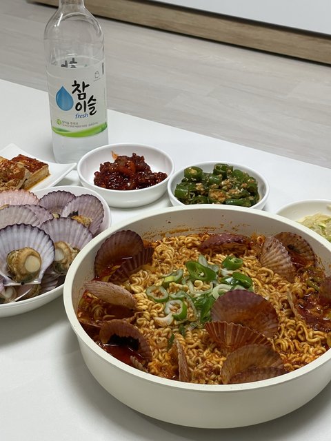 가리비 남아서 남은거 쪄먹고 나머지는 가리비라면
