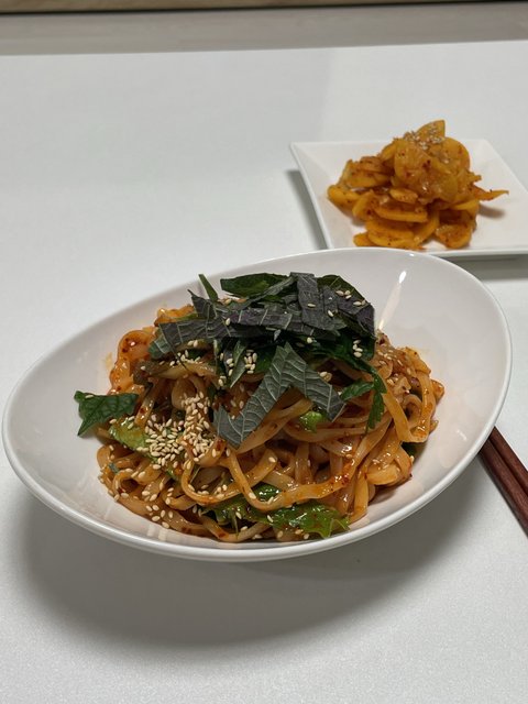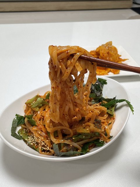 밥해먹기 귀찮아서 비빔칼국수!