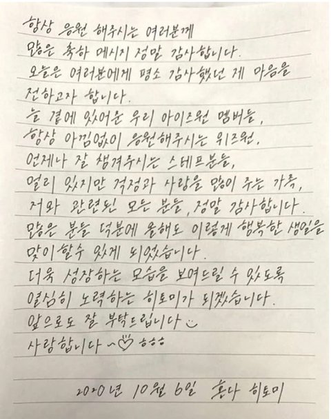 히토미가 ㄹㅇ 전후차이가 큰듯 프듀48땐 좀 통통하게 보였을 수도 있는데 아이즈원 활동하면서 진짜 살을 쫙뺌... 진짜 독기녀임 한국어도 개많이 늘었고 한국어로 운전면허증도 땀.... 글고 토픽에서 5급 땄는데 시험시간만 3시간짜리고 문제 수준보면 진짜 독서 지문급임... 애초에 일반인때 학교에서 전교1등도 해봤다고 함 진짜 열정만큼은 본받고 싶음...