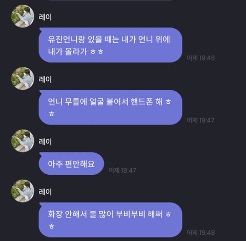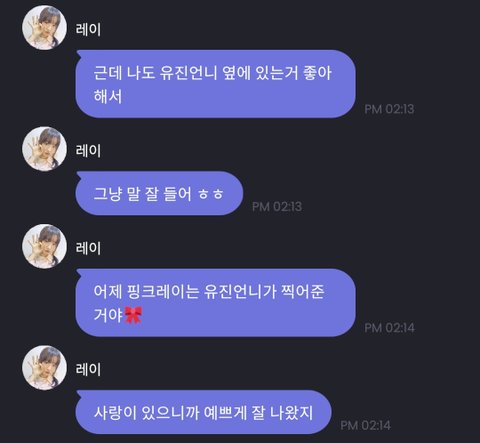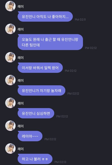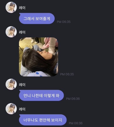 그전에 카톡읽씹했다고한건 ㄹㅇ장난이였어 일부로 레이 놀리려고 이번동영상은 재미없어서 답장안했다 이런 뉘앙스임 (+평소에도 서로 재밌고 귀여운 짤이나 동영상 공유함 답장잘해줌)...그 당시에 레이,유진이 둘다 버블에서 언급했었고 레이도 재밌는썰이라고 생각해서 문특,아형에서 얘기한거겠지