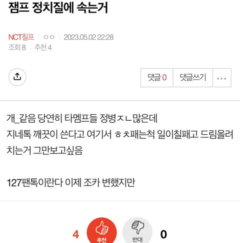 지금도 애들 까글 지 혼자 도배해놓은 거 다 티나는데