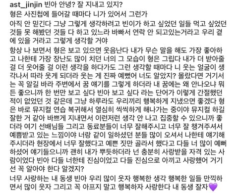 '하루라도 우리끼리 행복했으면 좋겠다' 여기서 눈물터졌다가 ㅠㅠㅠㅠ 밥그릇들고 있는 사진에선 웃음터짐 ㅠㅠㅠㅠ 문밥 ㅠㅠㅠ거기서 밥 잘먹고 잘지내고 있지? 맨날 팬들 밥걱정해주던 네가 없으니 밥이 넘어가질 않는다..언제쯤 괜찮아질까...보고싶다 빈아
