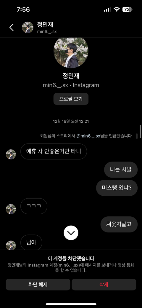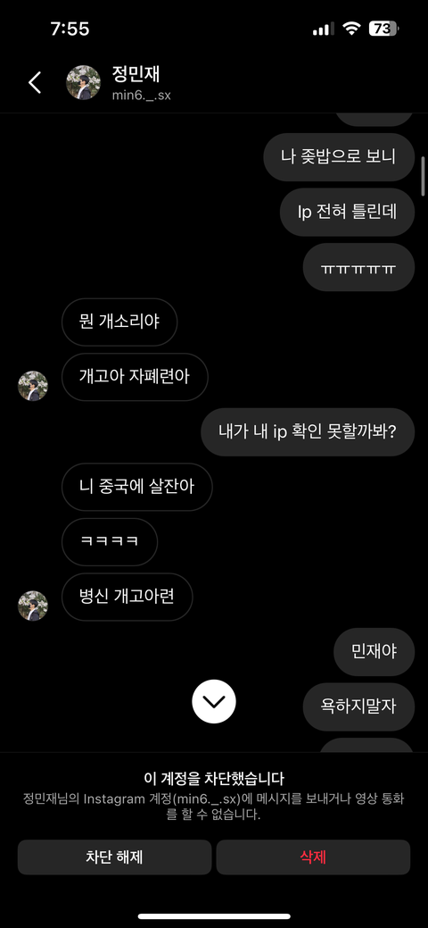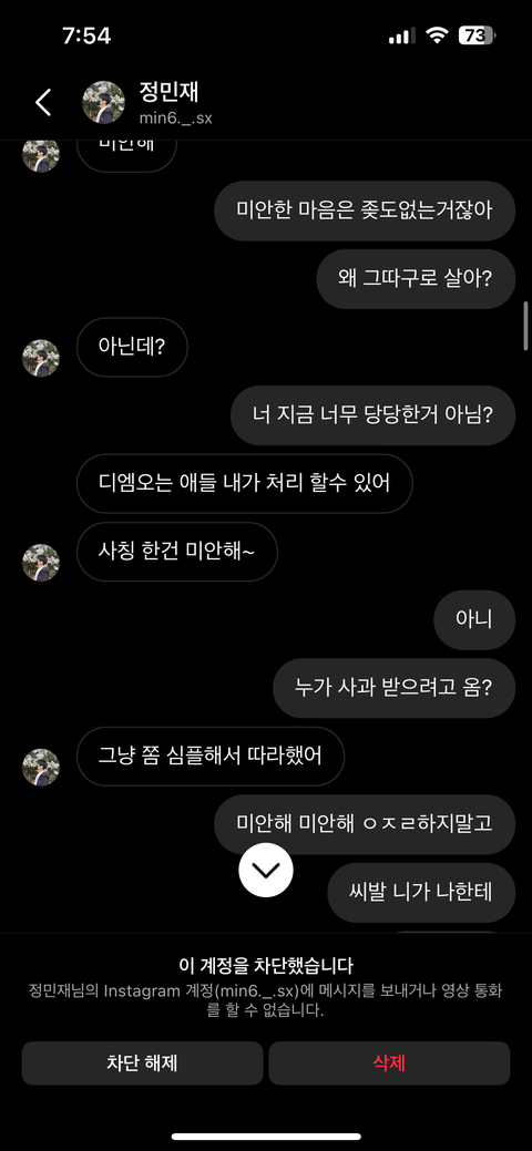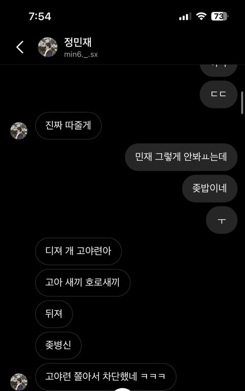 저는 저를 사칭하던 사람 입장을 한번 듣기라도 해보려고 저를 사칭했던 사람을 찾아가 인스타 디엠을 보냈습니다. 그러나 반성이란 없었고 사진에서 보이시겠지만 저한테 매우 심한 욕들을 매우 많이 했습니다..