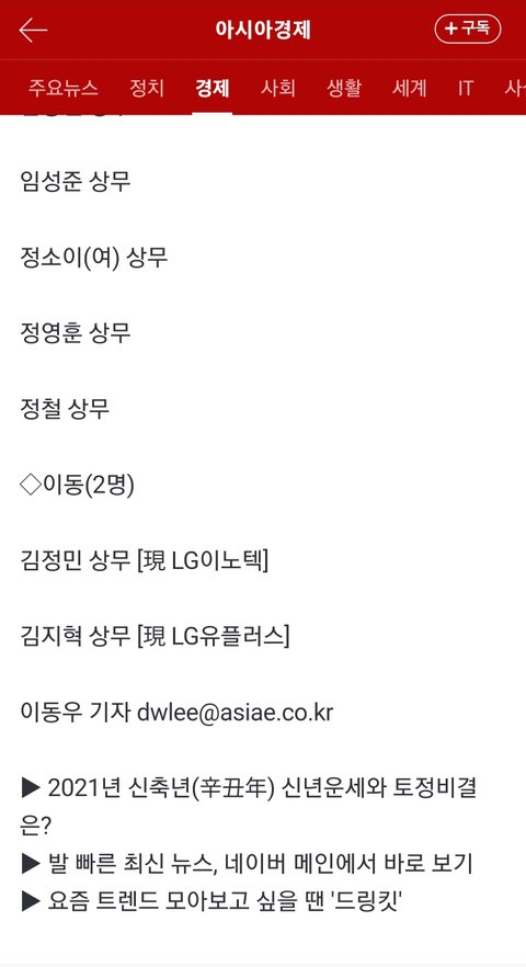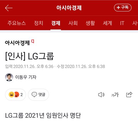 [펀글] <인사> LG그룹 - 아시아경제 이동우 기자 (2020.11.26)