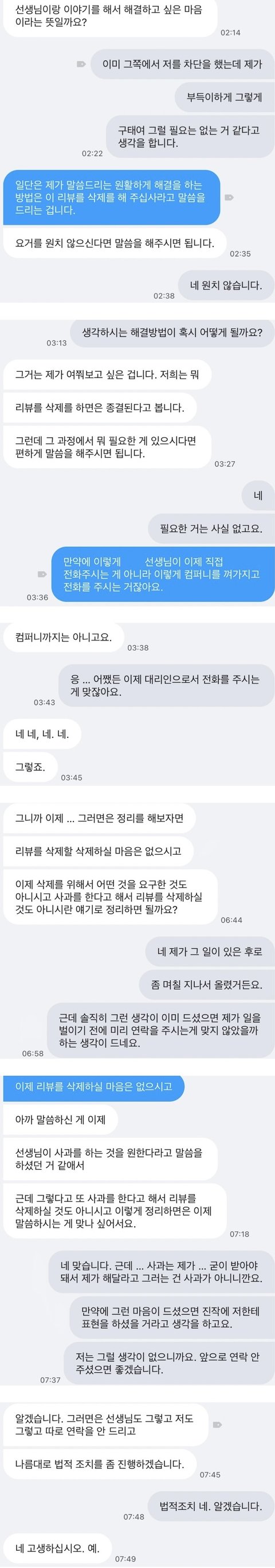전화해서 대리인이라도 죄송하다고 말했으면 달라졌을지도 모르겠습니다. 하지만 법적 조치를 하겠다 했으니까요.