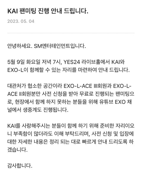 카이 무료 팬미팅 연대ㅠㅠ