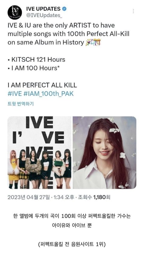한국인 역대 2번밖에 없는기록 아이브 아이유