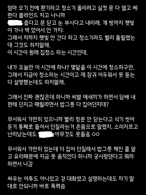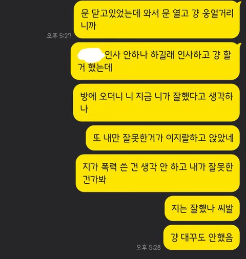 아무 죄 없이 일방적 언어, 정신폭행 당하고