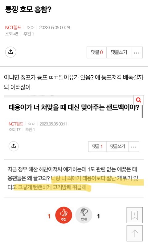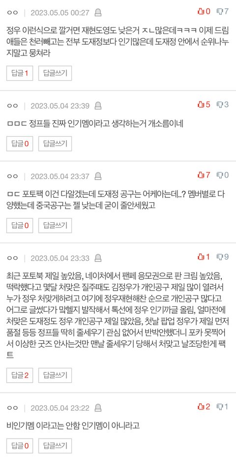 해찬팬이 정신 분열 도져서 하나는 정우 팬 하나는 ㅁㅋ 팬으로 정하고 정우 팬조차 몰랐던 화장품나부랭이 순위까지 조사해와서 또 그걸로 정프를 팸, 동시에 베댓은 ㅁㅋ랑 ㅁ프 패는 글로 조작해놓고 혼자 댓글 주렁주렁 달고 있는 거 다들 어떻게 생각해?