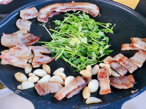 흠.. 전 삼겹살에 같이 구운 미나리와 짠