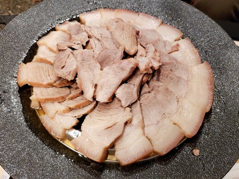 이날은 갈비네요 이 고기판은 불이 오르는데 시간이 걸리지만 열전달이 오래가서 구워두고 먹는 고기들에는 아주 적합해요
