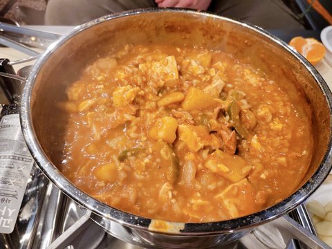 뭉근한불에 밥을 넣고 끓인 된장술밥을 마지막으로 소주 7병정도를 먹은거 같아요 다음날 똥을 다섯번은 싼거같네요