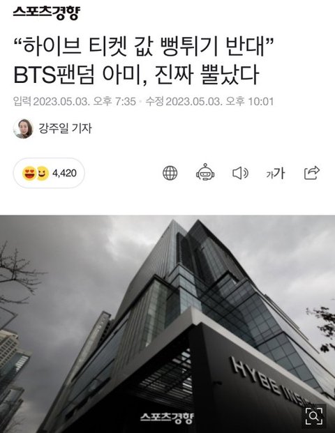하이브 티켓 값 뻥튀기 반대