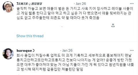아미는 하이베 돈을 그만 주세요. 그는 다른 그룹에만 사용하고 방탄소년단에는 사용하지 않습니다. 하이브에서 아무것도 사지 마세요. 그리고 멤버가 라이브를 할 때 하이브와 재계약하지 말라고 하세요.