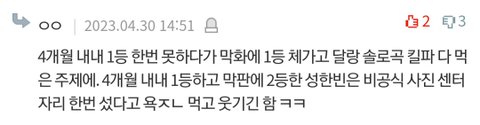 장하오 1등에 한쳐먹고 온커뮤에서 패기