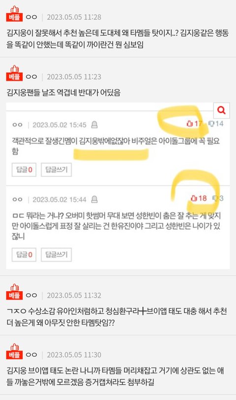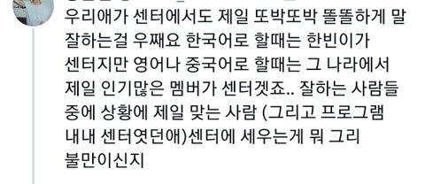 김지웅 말하는거 꼬투리 잡고 리더 할 사람 성한빈 뿐이라고 팬톡 도배했던것도 어이없어