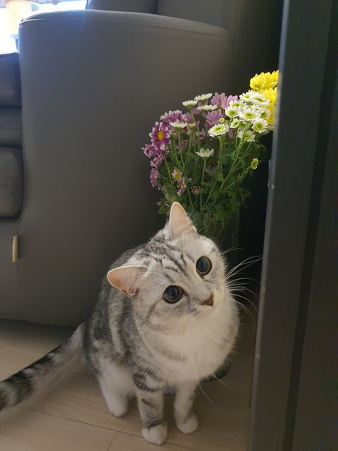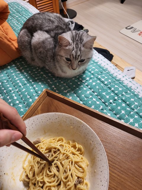-> 오빠가 집에 돌아오자마자 나가자고 소리치는 냥이