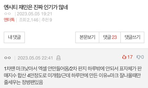 팬톡 댓글 검색 보기