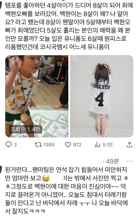 아기 어머니가 글 올리심 백현이 최애 아기래 ㅋㅋㅋ 너무 귀여웡
