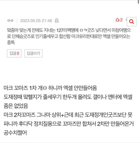 마크 꼬마즈 1차 개 떡 락했을땐 저표 없었는데