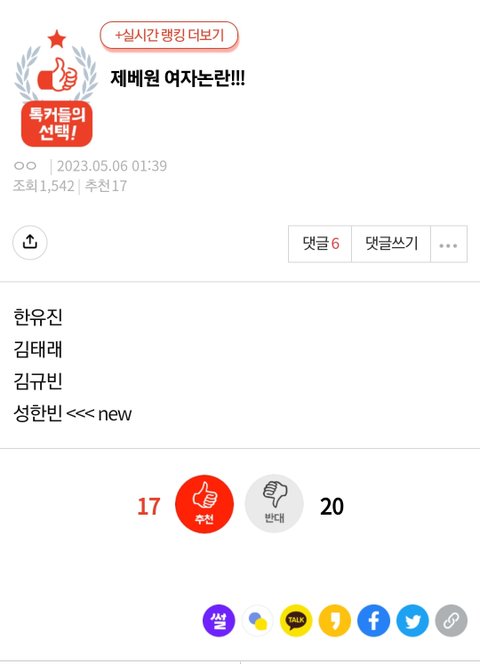 김지웅도 추가해줘 심지어 성한빈줌마팬들 먹금짤도안달아주더라