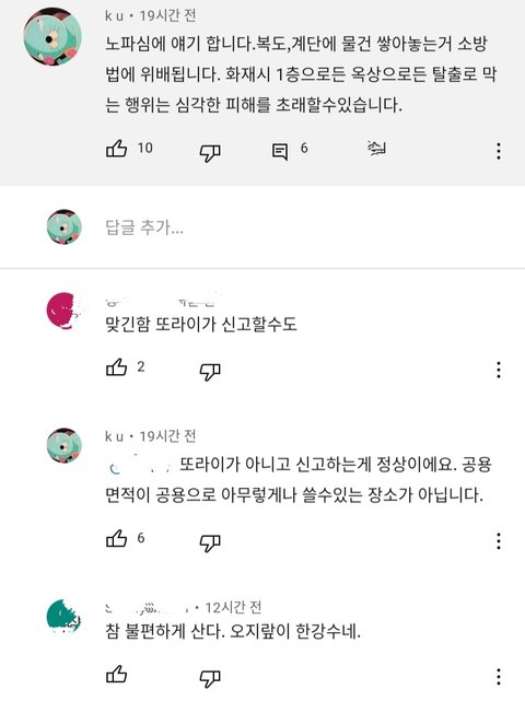 만에 하나라도 일어날수 있는 화재사고 대비해서 적재물 공용계단에 놓지 마라는게 그렇게 오지랖인거야?
