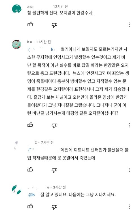 누굴 비난 하려는것도 아니고 인명피해 막기위한 충고였을뿐인데 이렇게 비꼬임을 당해야 하냐는거지..