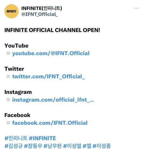 12년 인스피릿으로서 심장 개빨리 뛰는 중 인피니트 상표권 안 뺏어간 이중엽씨한테 처음으로 고맙고 이거 지키기 위해 엄청 노력한 멤버들한테 너무 고맙다 진짜 ..