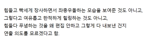 예능, 돌팬이라 티빙으로 챙겨보긴 했는데 기대가 컸나, 좀 아쉬웠음. 뭔가 탁 포커스 맞는 게 없는 느낌. 멤버합을 보여주기엔 숙소나 휴식 타임 편집본이 너무 적고 음식을 보여주기엔 메뉴도 그렇고 요리도 항상 같으니 너무 간소하고 외국인 반응만을 보여주기엔 또 그렇고. 윤식당은 숙소, 장보기 제외하고도 아침에 조깅을 하거나 바다에서 수영하고 일 끝나고 아이스크림 사먹으면서 외식하고 풍경 보여주고 오픈 전 길거리 사람들 모습들도 보여주고 하면서 여행 예능의 감성 ╋ 요리 예능까지 잡았는데 이번 서진이네는 강식당 바이브도 윤식당 바이브도 아니고 그렇다고 새롭지도 않아서 아쉬웠음.