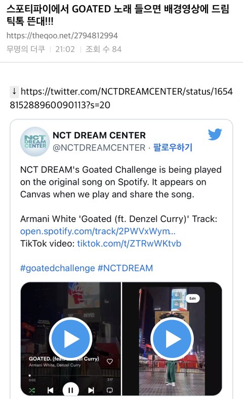 스포티파이에서 원곡 틀면 드림 나온대..