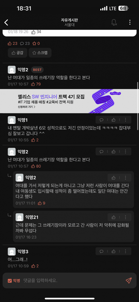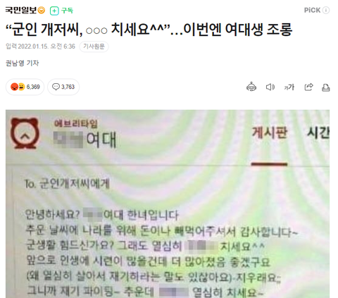 지금 여대생들 음침하게 숨어서 군인비하하는 것들