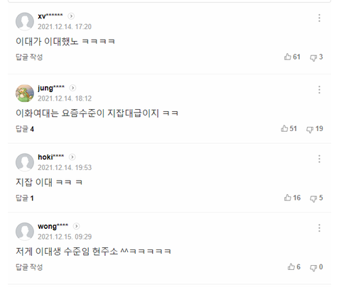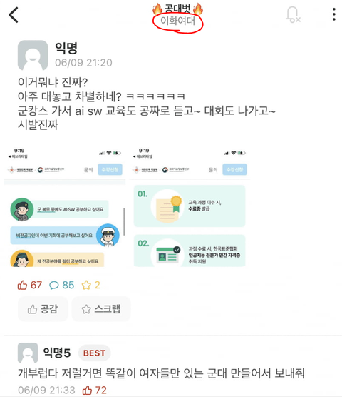 특히 이화여대는 과거부터 남혐, 군인비하에 유구한 전통이 있었음