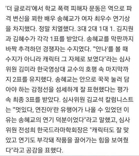 백상 여최우수상 최종득표수