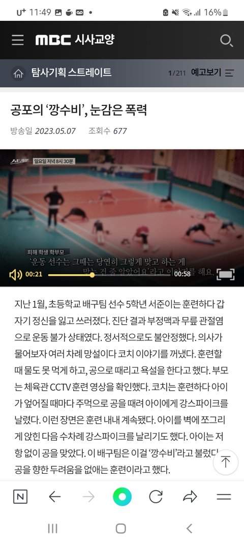 초등배구부 "공포의깡수비"아동학대의혹 MBC스트레이트 오늘방송예정 20시30분