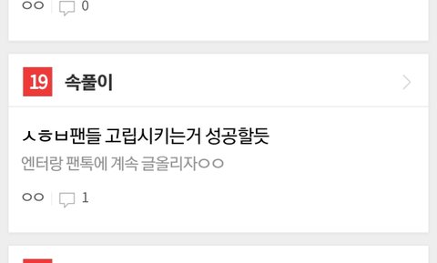 팬톡랭킹에 떠있길래 들어갔는데 글은없다고나와