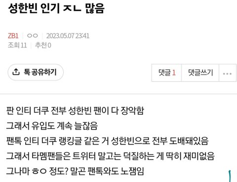 인기에 집착하는 국내원탑 그팬덤답다!!